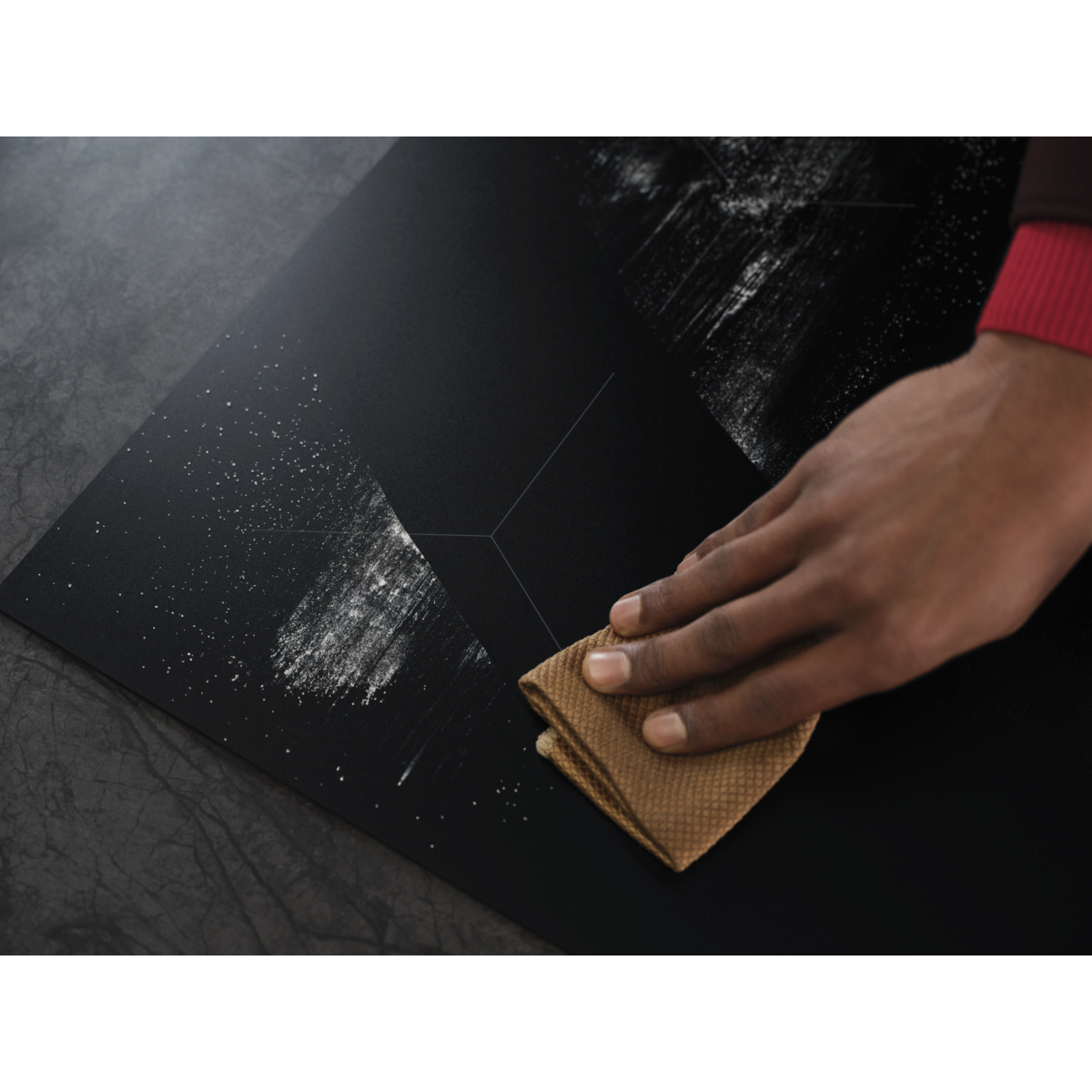 *Perustuu ulkopuolisen sveitsiläislaboratorion hankaustesteihin, jotka suoritettiin kansainvälisen IEC 60068-2-70-standardin mukaisesti. Naarmujen näkyvyys arvioidaan sisäisesti verrattuna normaaleihin keraamisiin keittotasoihimme ilman erityiskäsittelyä tai pinnoitusta.