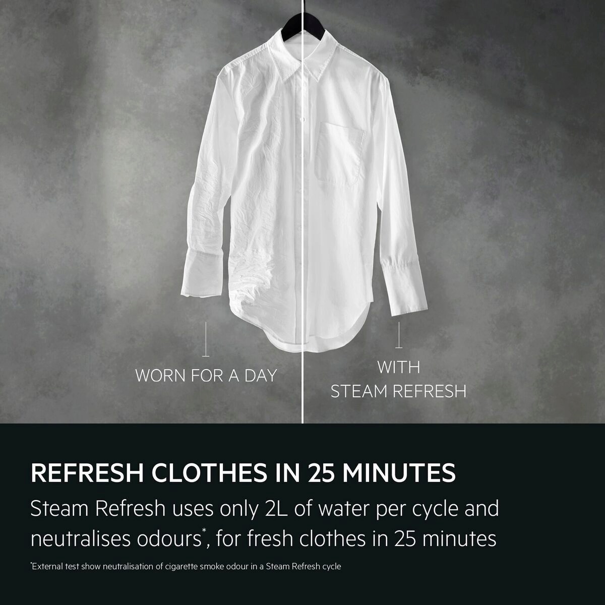 * Sisäinen testauksen mukaan Steam Refresh -ohjelma poistaa tupakanhajua.